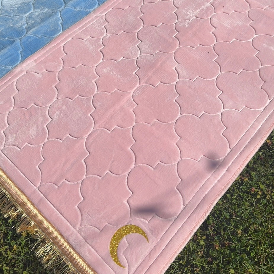 Eine wunderschöne Luxus-Gebetsmatte mit weicher Polsterung und eleganten Details – jetzt individuell anpassbar mit Ihrem Namen oder dem Namen eines geliebten Menschen.