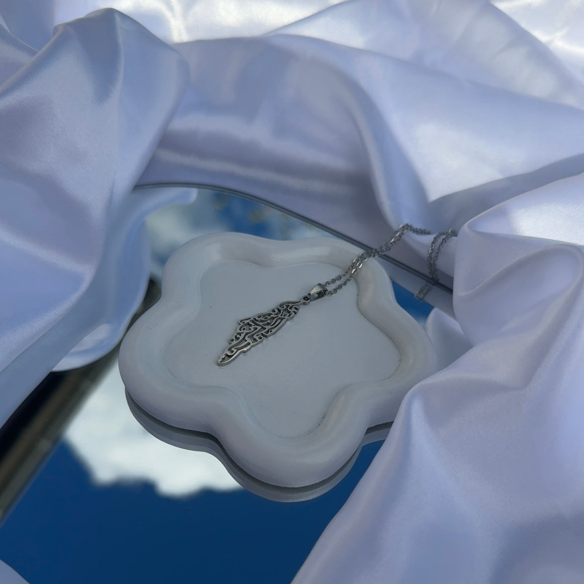 Portez la Palestine près de votre cœur avec cet élégant collier, disponible en finitions or et argent .